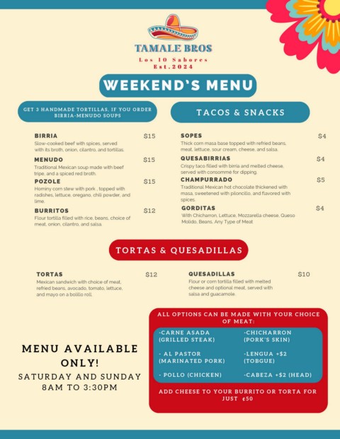 MENUDO $15 QUESABIRRIAS $4